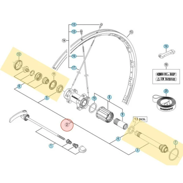 Axe complet de roue arrière Shimano Ultegra WH-6800-R.