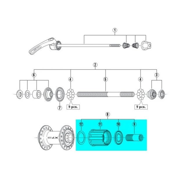 Ce corps de roue libre Shimano Y3D698040 est destiné aux moyeux Shimano FH-T660. Il est compatible 8/9/10 vitesses.