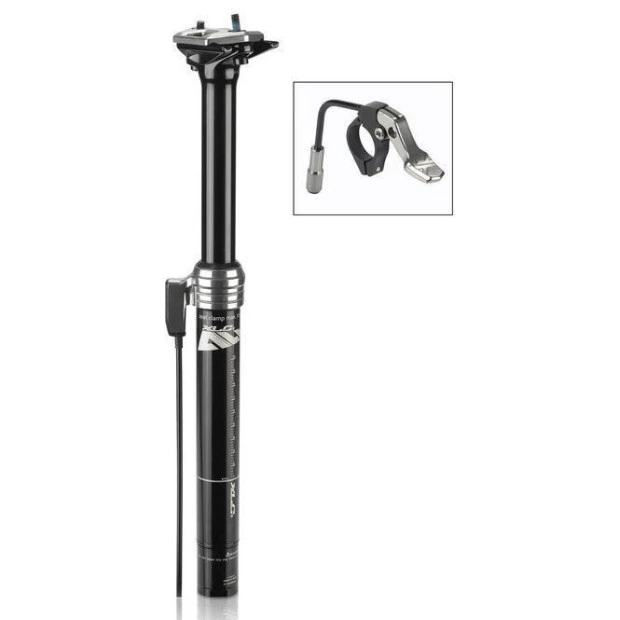 La tige de selle télescopique XLC SP-T10 a été conçue pour le VTT All Mountain. Fabriquée en aluminium 6061-T6, elle possède un débattement hydraulique de 125 mm. Le collier haut et bas est usiné CNC. Grâce à sa commande au guidon, vous pourrez la descendre et la baisser à votre guise.